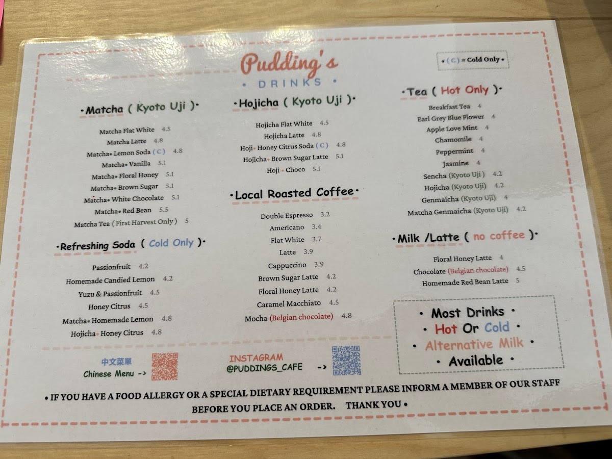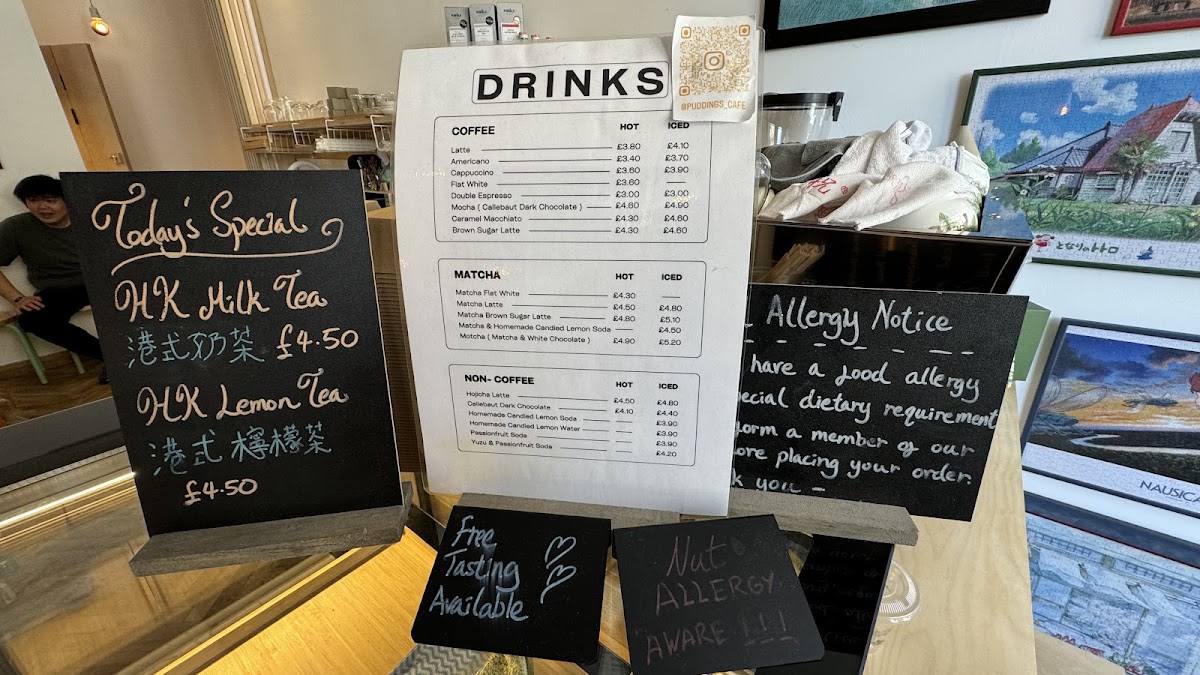 Pudding’s offers a thoughtfully curated café menu that balances comforting drinks with a selection of delicate, handcrafted cakes. This is a place where simple pleasures — like a well-made matcha latte or a slice of cheesecake — feel just right, whether you’re settling in for a quiet moment alone or meeting a friend for a relaxed catch-up.